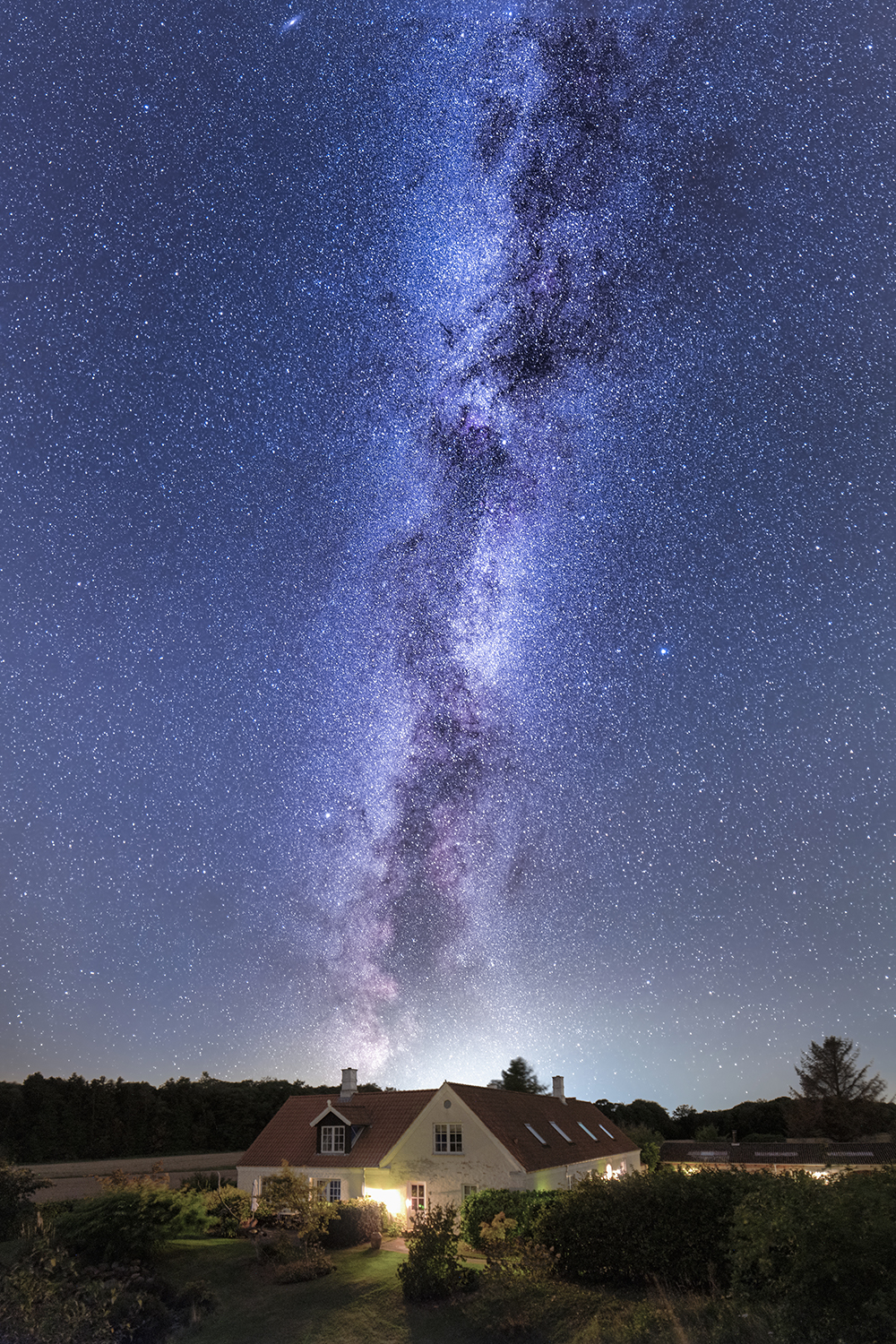 Dit hjem og mælkevejen? Her er et par eksempler på hvordan dit hjem kan tage sig ud under nattens himmel. Hvis forholdende tillader det, kan du bestille et billede som dette af dit eget hjem. Jeg undersøger om muligheden for at tage et mælkevejsbillede af netop dit hjem kan lade sig gøre, og hvis det kan – så planlægger jeg et billede i dialog med dig.