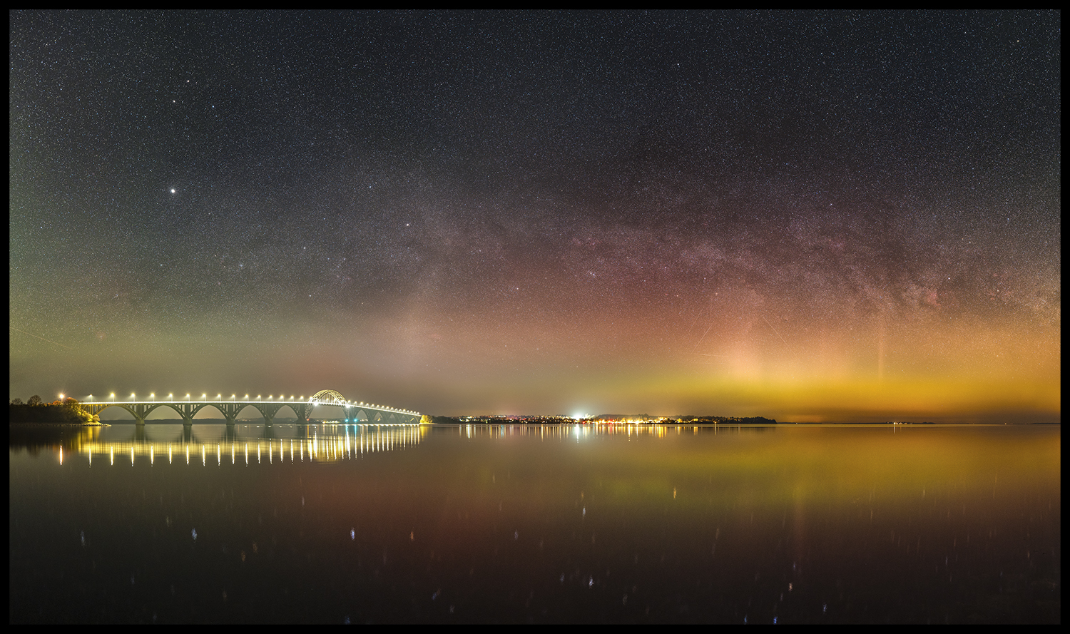 Begge steder var vandet som et spejl, og ikke en vind rørte sig, nordlyset stod og dansede dovent bad disen på himlen, mens mælkevejen og tusindvis af stjerner spejlede sig i vandet.